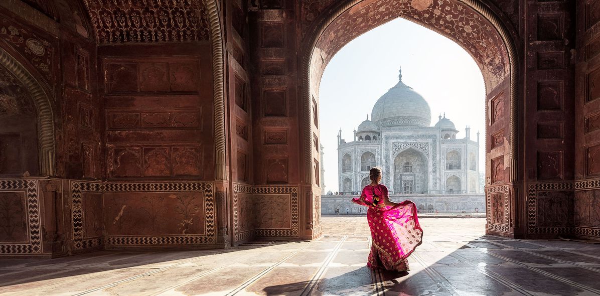 Das Taj Mahal – Juwel der Architektur und Symbol unendlicher Liebe bezaubert jeden Besucher. Als 1631 Mumtaz Mahal, die Hauptfrau des Großmoguls Shah Jahan bei der Geburt ihres vierzehnten Kindes starb, sollen ihre letzten Worte „Bau mir das schönste Grabmal der Welt“ gewesen sein. Blind vom Weinen um die Liebe seines Lebens, beauftragte Shah Jahan noch im selben Jahr den Bau des prachtvollen Mausoleums.