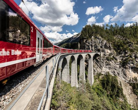 Fünf legendäre Bahnstrecken, eine unvergleichliche Reise: Erleben Sie die Alpenwelt Graubündens stilvoll in der 1. Klasse - von der UNESCO-Strecke Albula über die weltberühmten Panorama-Routen am Berninapass und Oberalppass bis hin zur nostalgischen Krokodil-Lok und der eindrucksvollen Arosabahn. Meisterwerke der Bahntechnik, eindrucksvolle Landschaften und echtes Schweizer Bahngefühl.